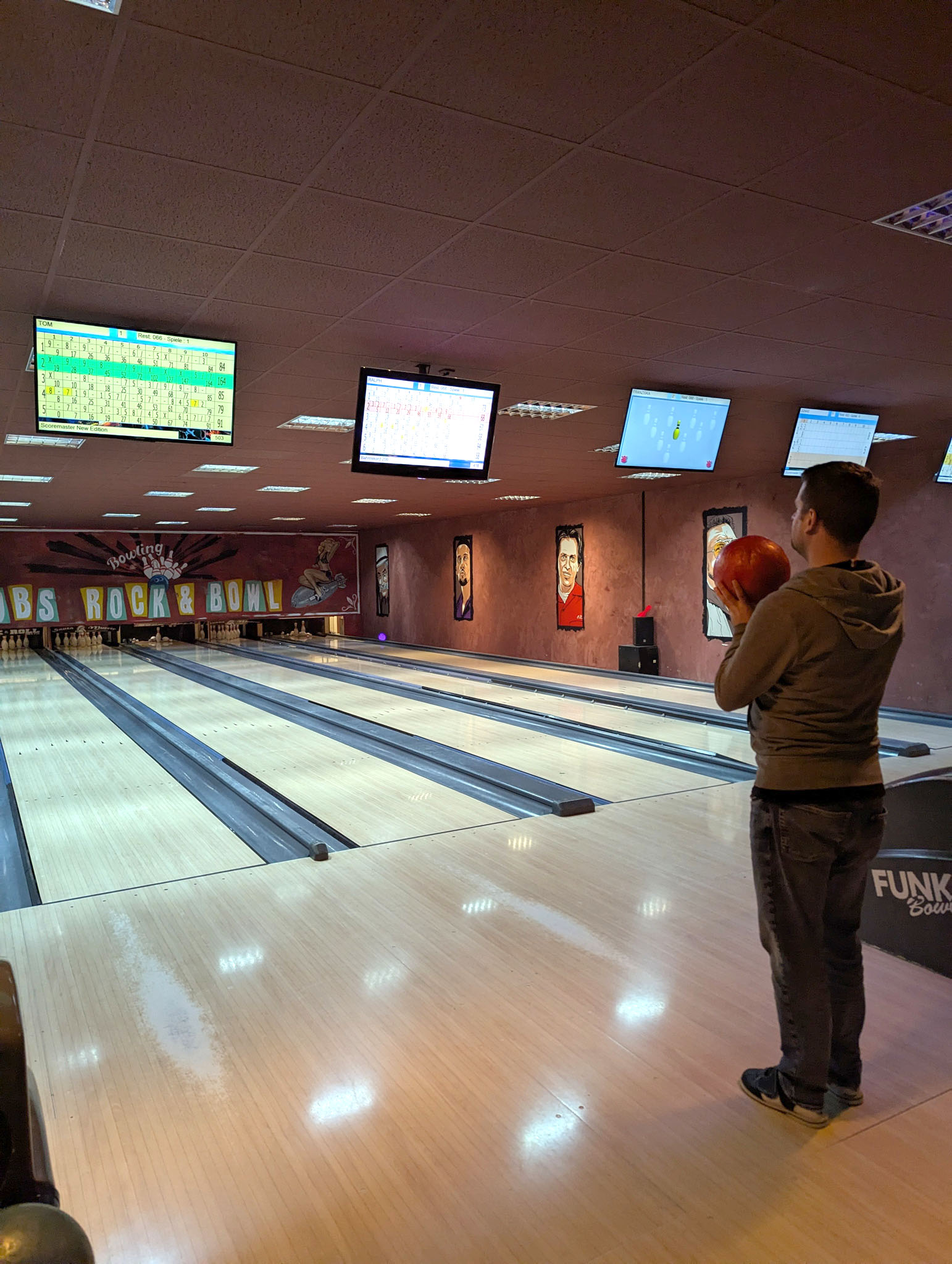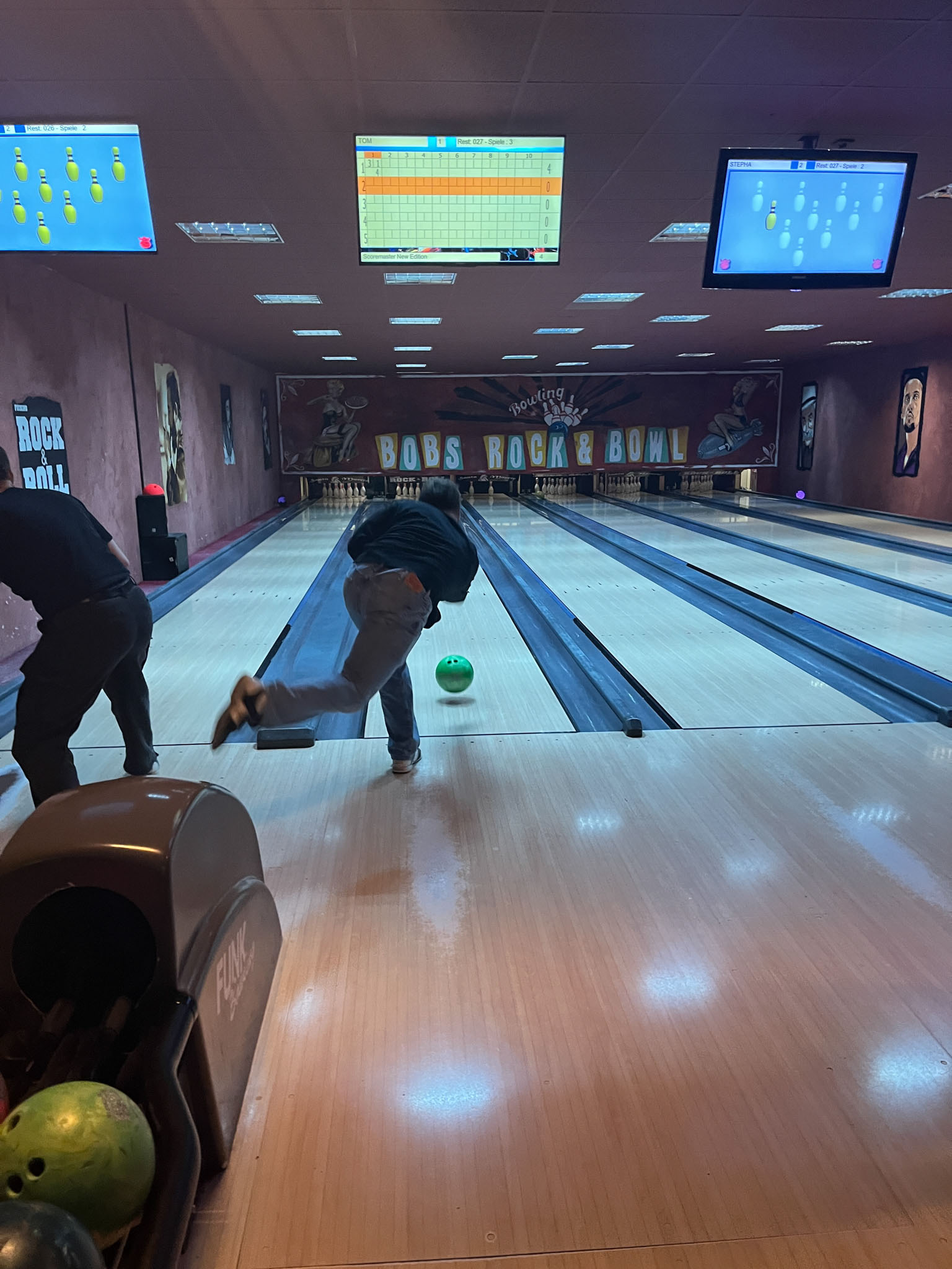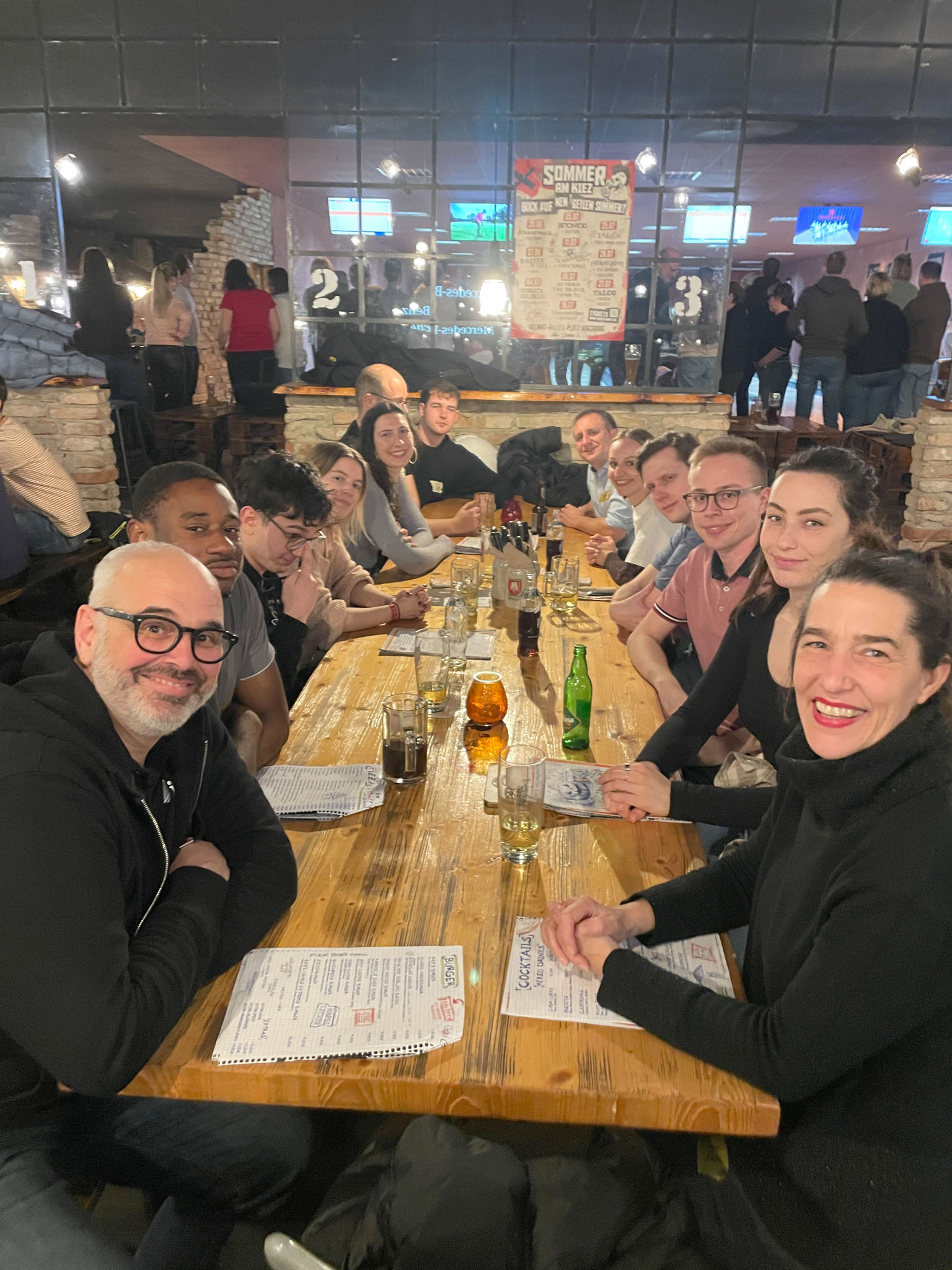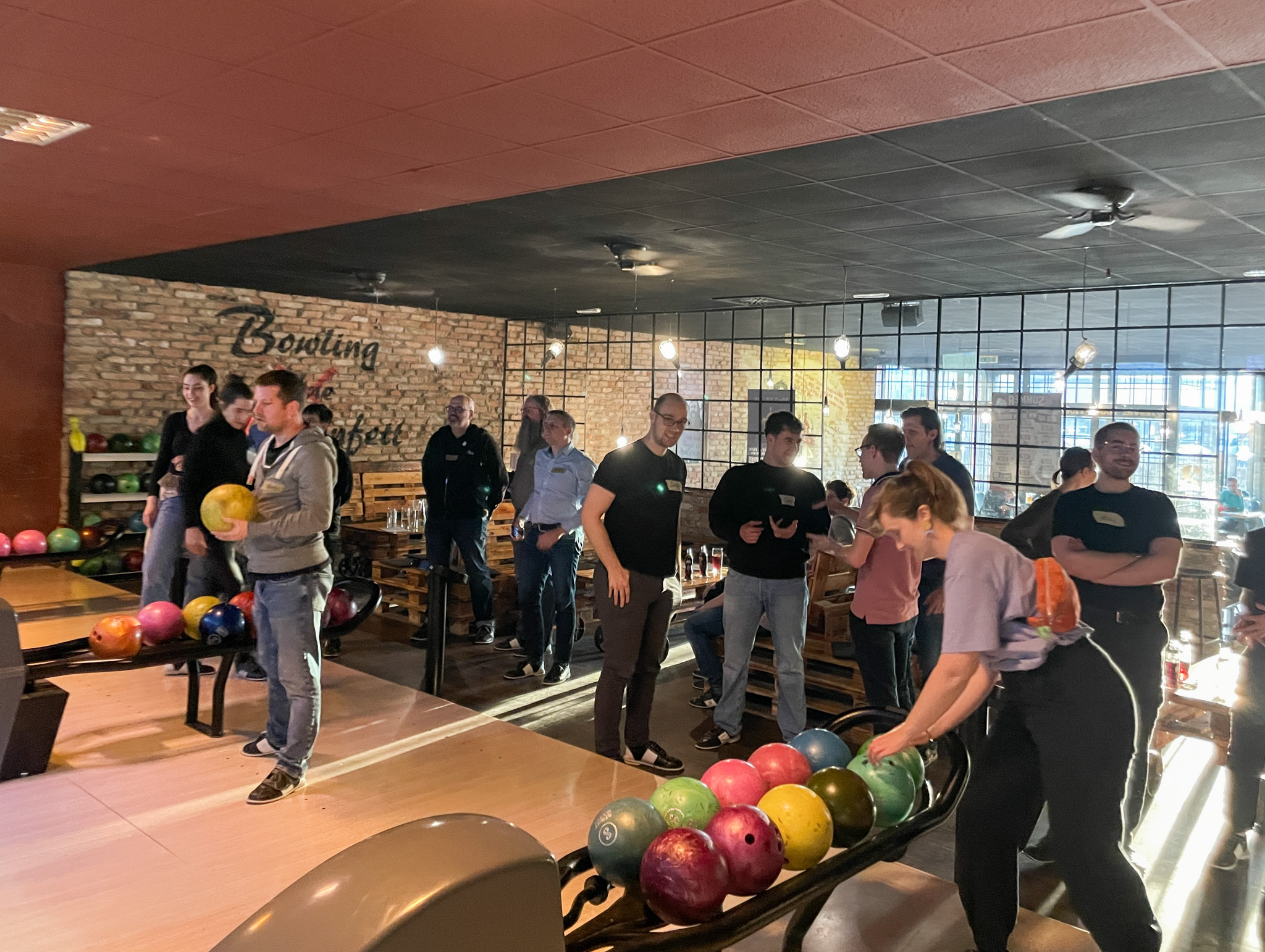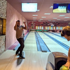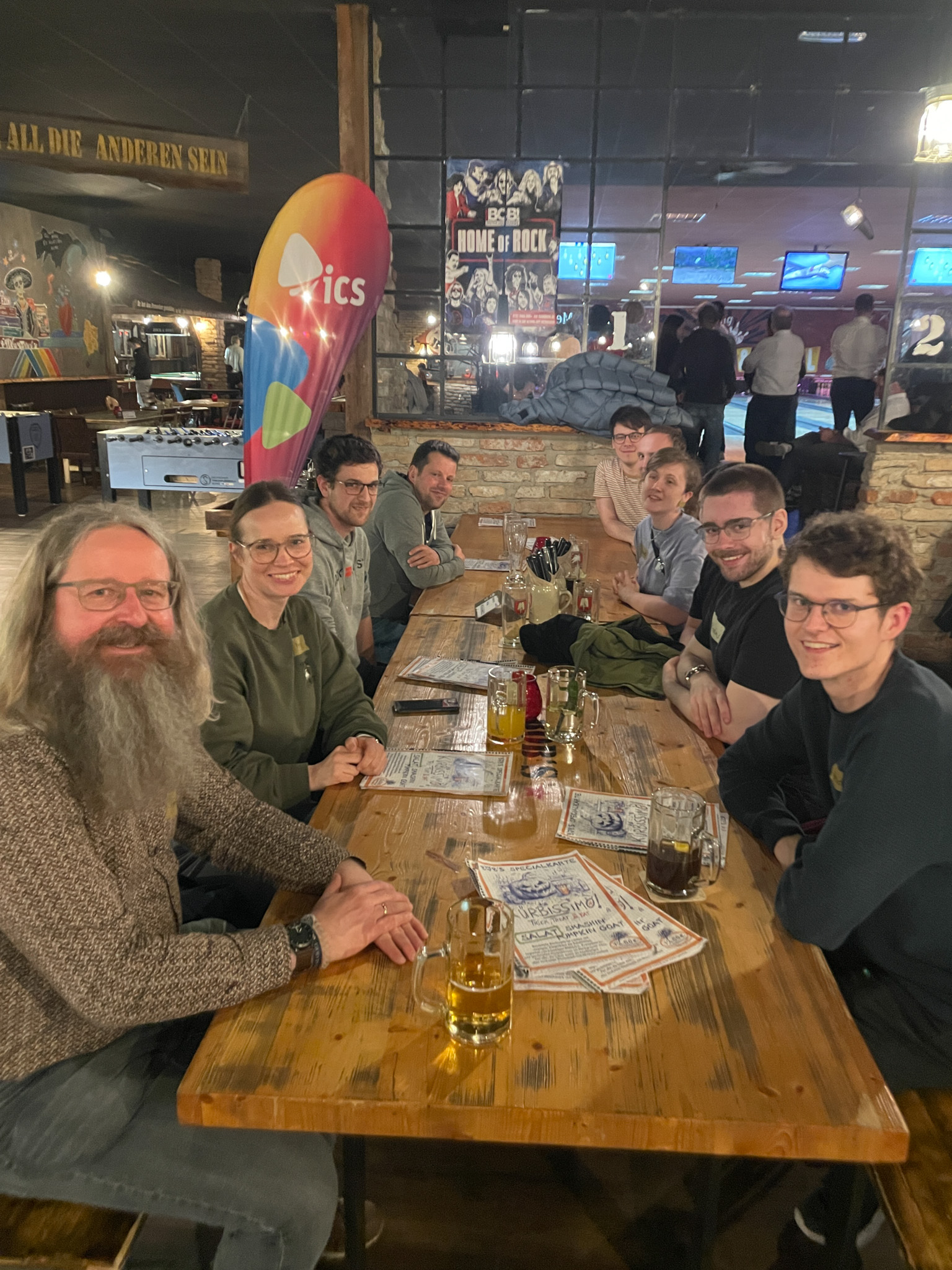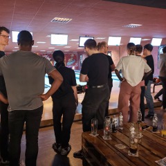 In der Woche darauf folgte unser Bowling-Abend im BOB'S in Nürnberg. Zwischen Strikes, Spares und jeder Menge guter Laune bot sich die perfekte Gelegenheit, alte Kontakte wieder aufleben zu lassen und neue Bekanntschaften zu knüpfen. Schnell zeigte sich: Beim Bowling entstehen nicht nur spannende Matches – ob an der eigenen Bahn oder zwischen den Teams – sondern auch inspirierende Gespräche über Studienzeit, Karrierewege und gemeinsame Interessen. Nachdem auch die abenteuerlichsten Würfe nicht die Integrität der Bahnen (oder gar der Decke) verletzt hatten und dank Trick 17 (Schnalle drehen) auch die weitesten Schuhe am Fuß blieben, wurde bei Burger und Pizza noch lange gequatscht.